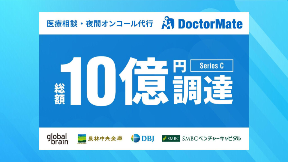 介護事業所向けに医療ソリューションを提供するドクターメイト株式会社(代表取締役・医師 青柳 直樹)は、シリーズCラウンドでグローバル・ブレインが運営するGB8号ファンドおよび農林中金イノベーションファンド、DBJキャピタル並びにSMBCベンチャーキャピタルの4社を引受先とした第三者割当増資と、借入を含む10億円の資金調達を実施したことをお知らせします。